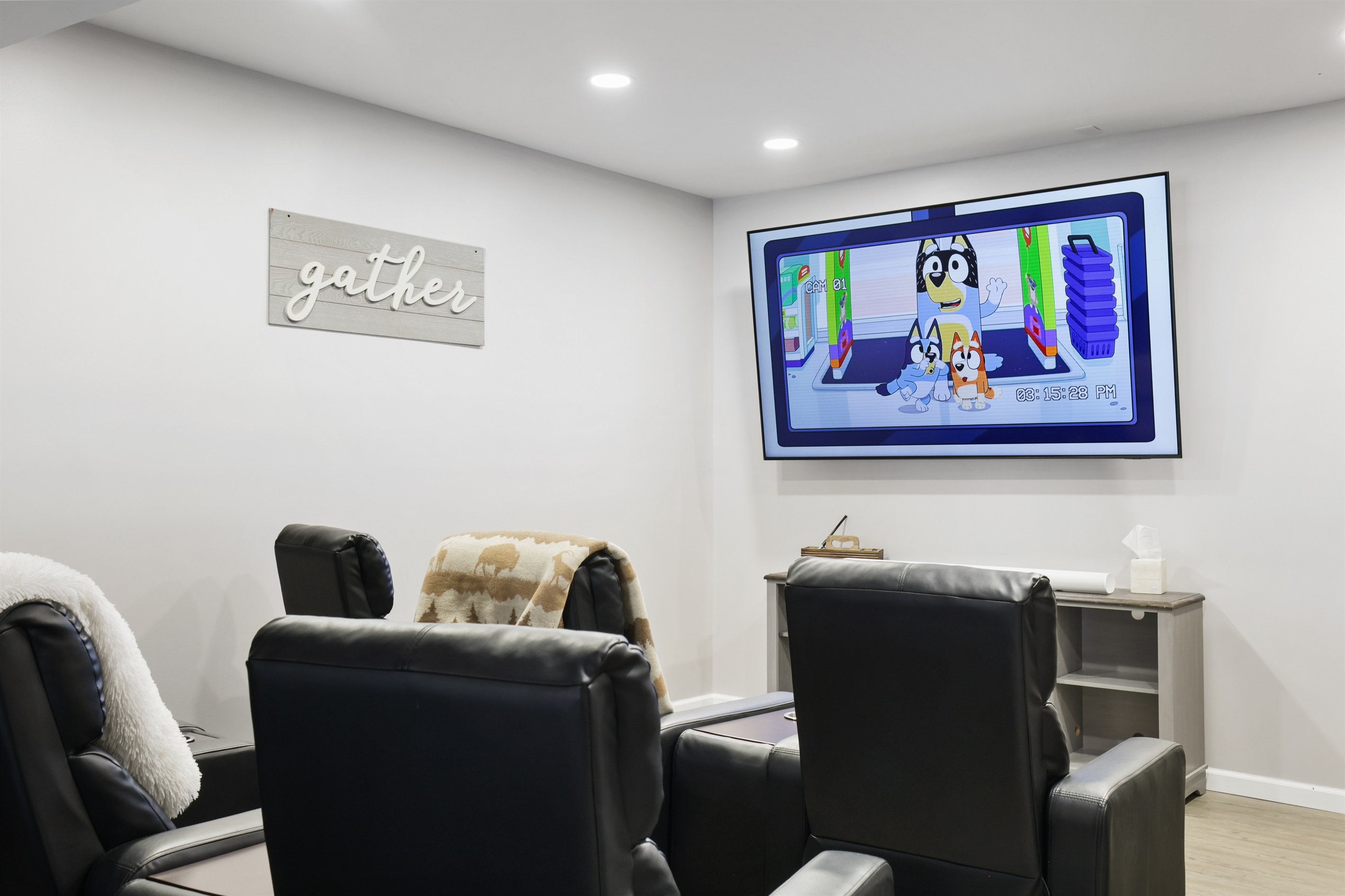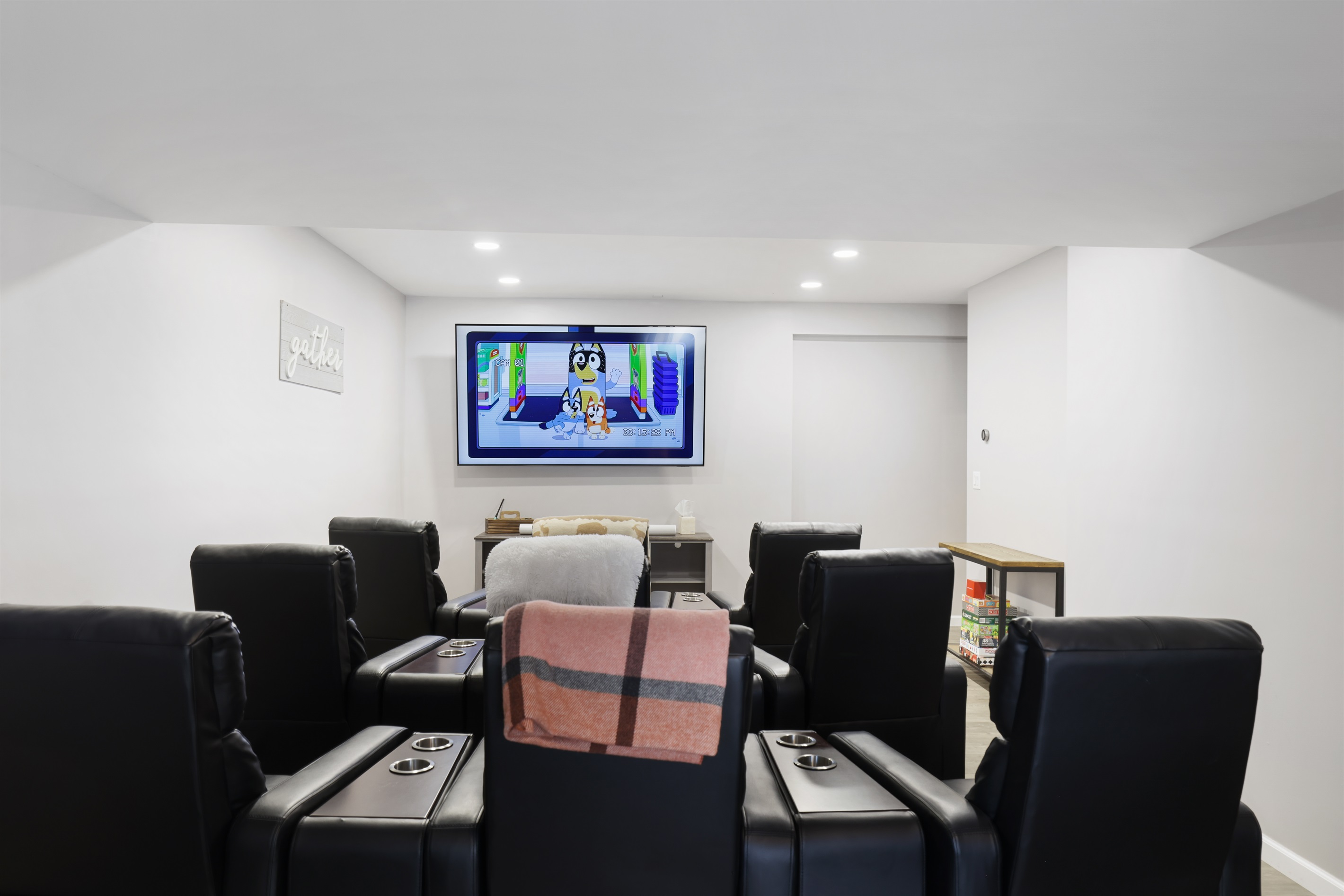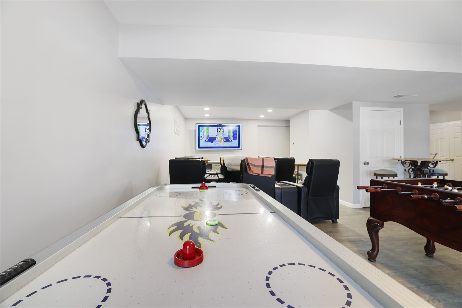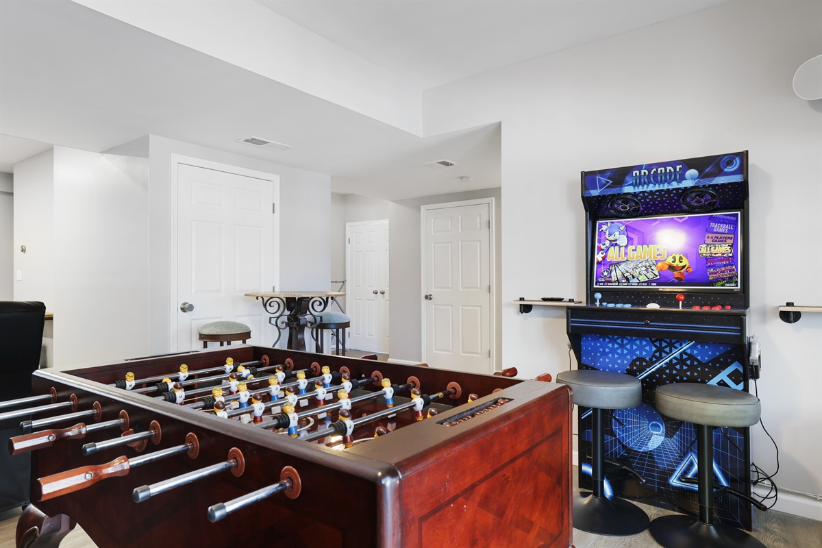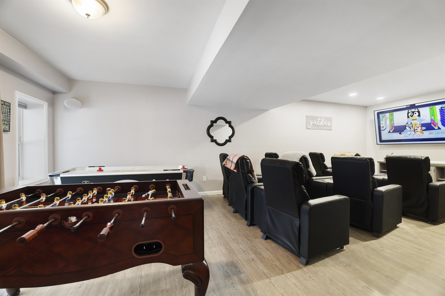 • Game/Theater room with foosball, air hockey & movie setup