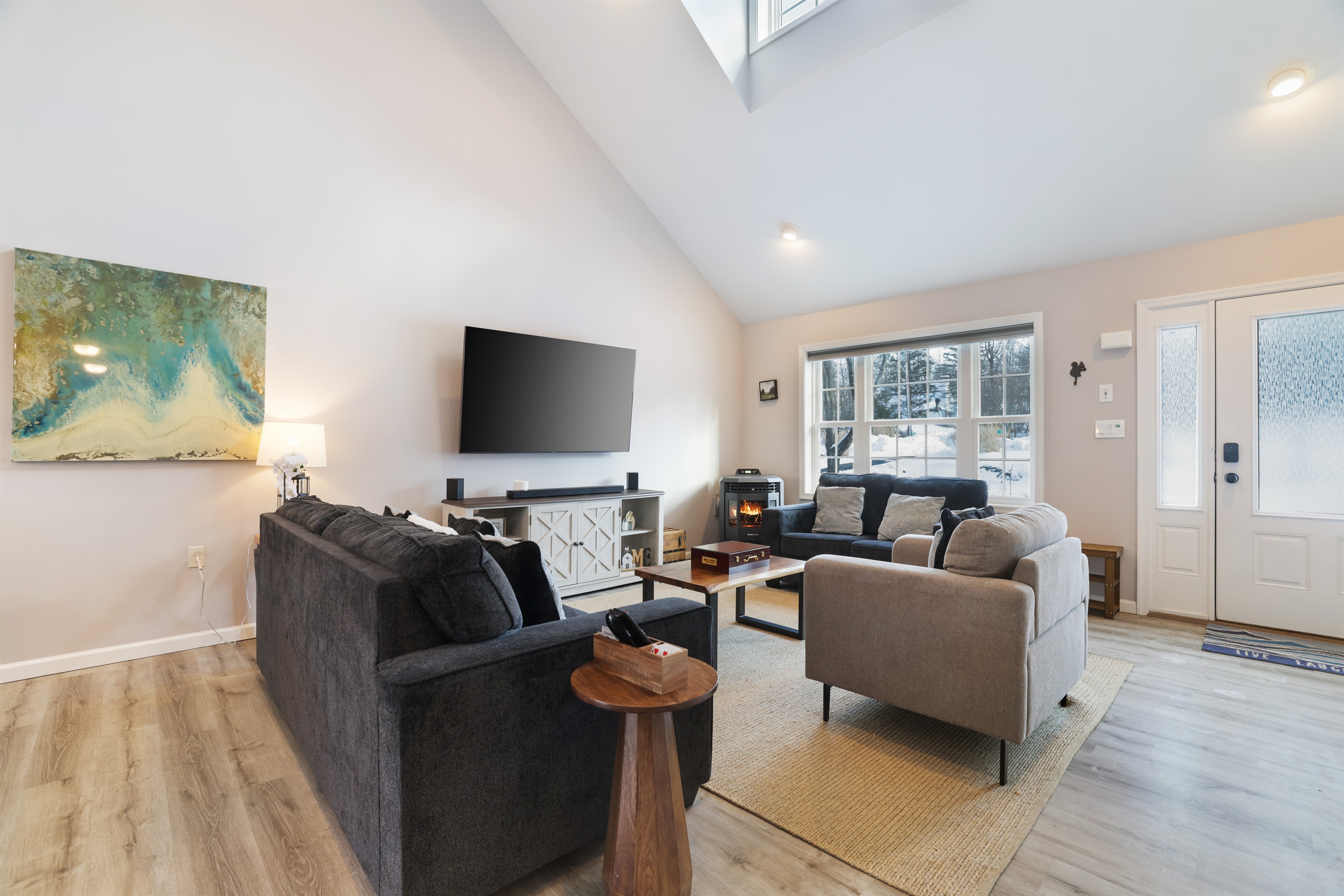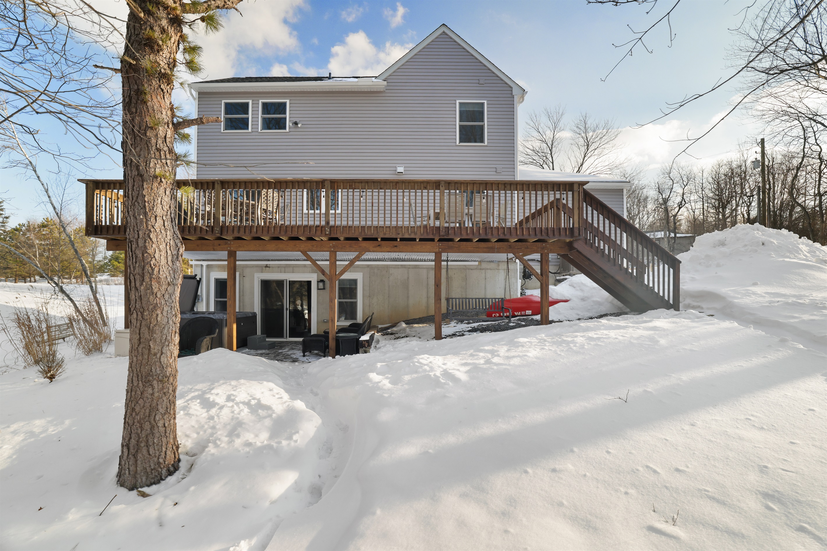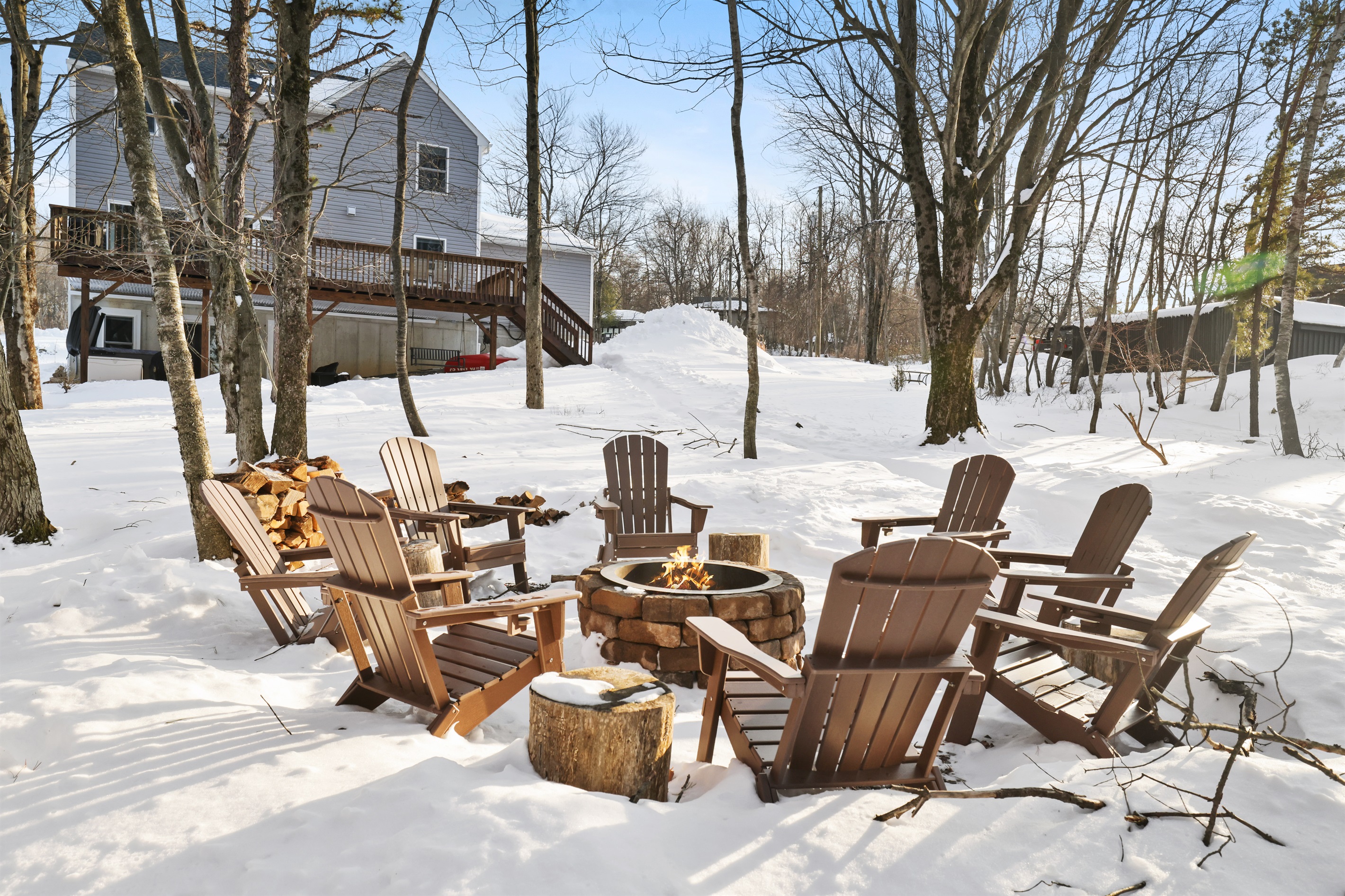 Wake up to serene lake views and enjoy private lake access just steps from your door with a brand new hot tub. Spend your days out on the water with a provided paddle boat, two canoes, and a kayak, or gather around the fire pit in the evenings for cozy family moments under the stars.