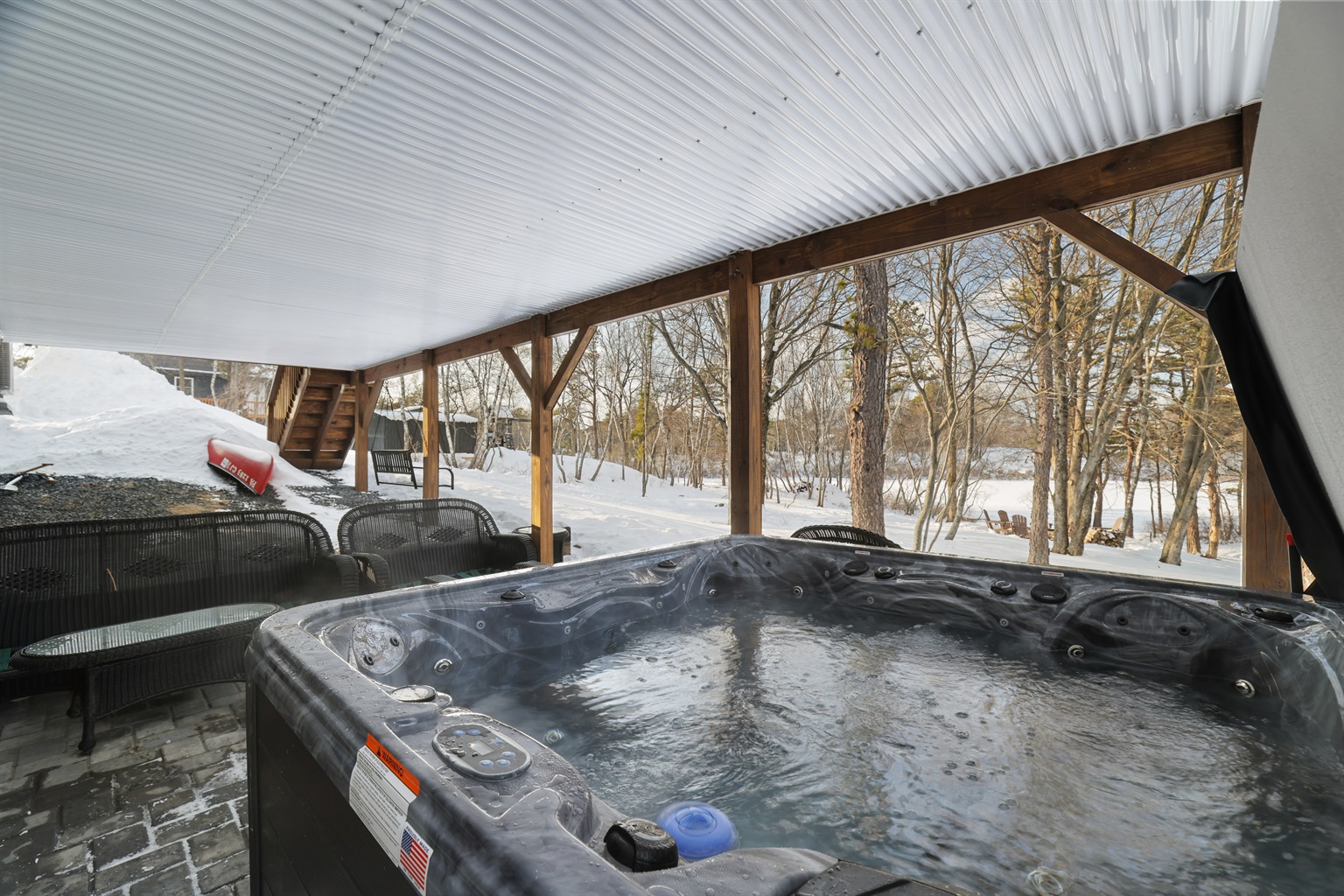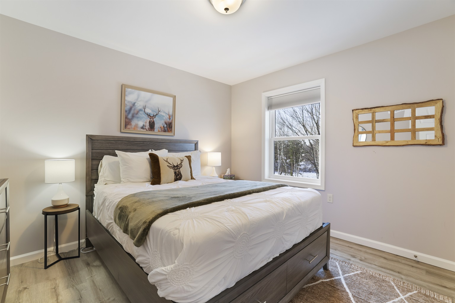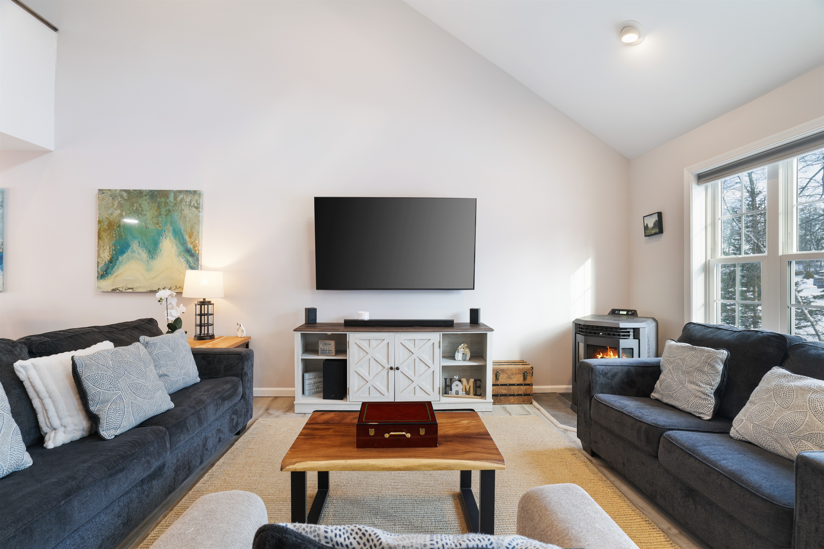 Wake up to serene lake views and enjoy private lake access just steps from your door with a brand new hot tub. Spend your days out on the water with a provided paddle boat, two canoes, and a kayak, or gather around the fire pit in the evenings for cozy family moments under the stars.