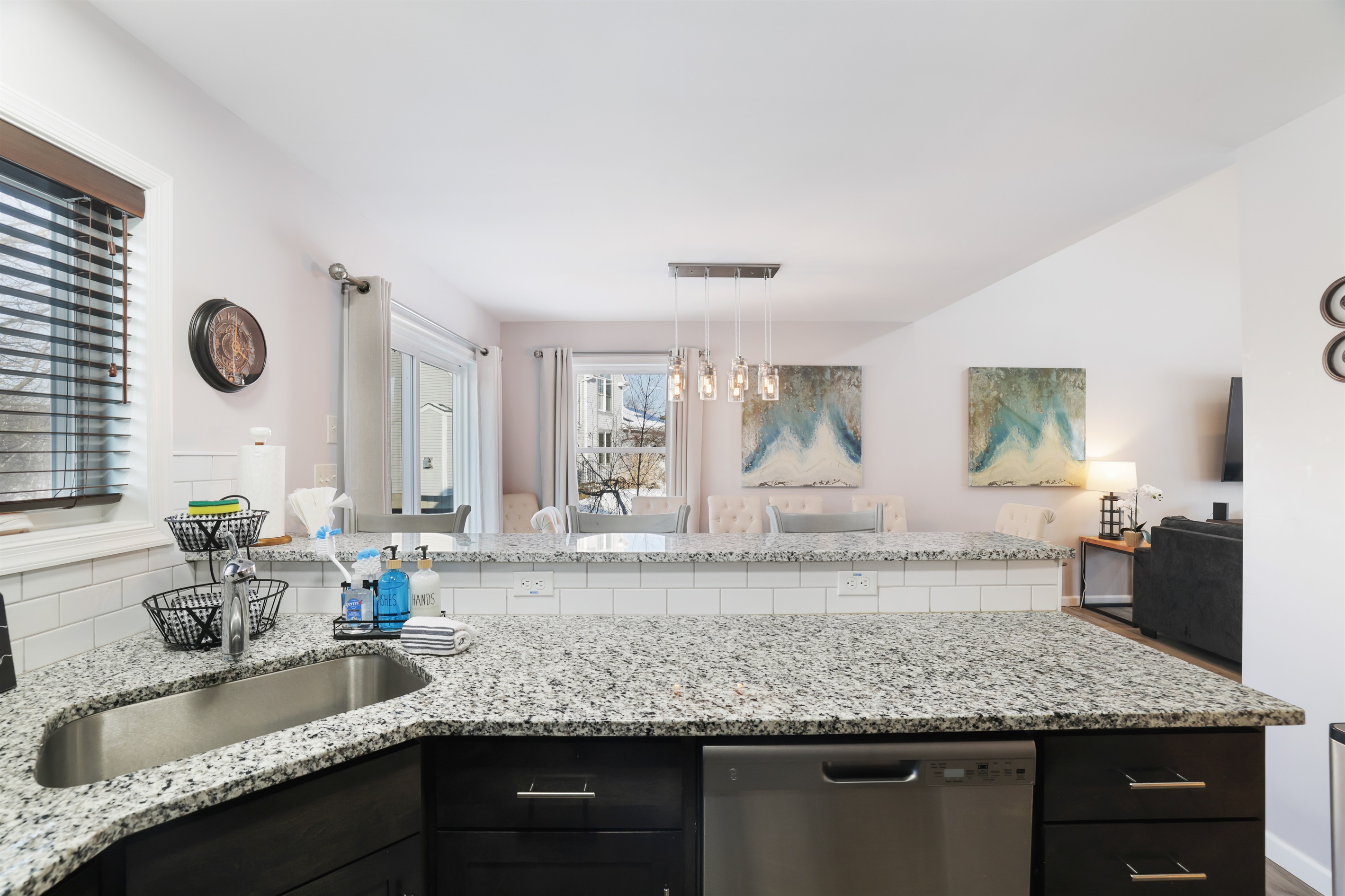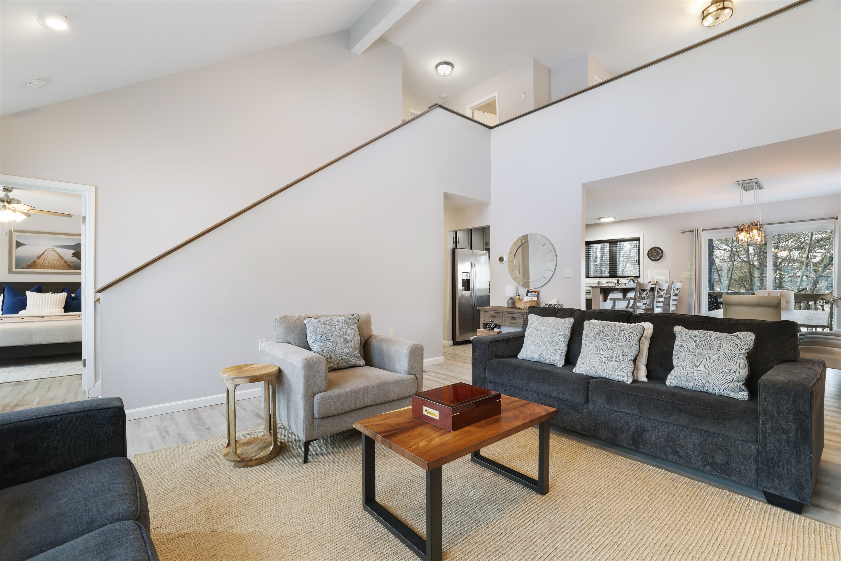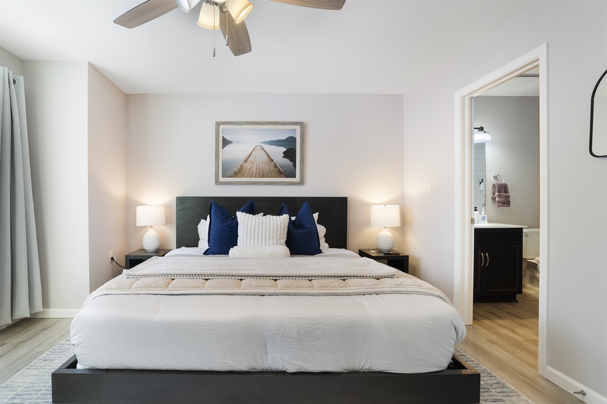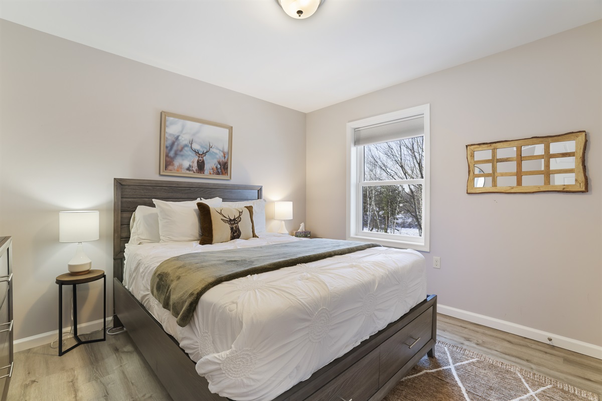 Main Floor: ● Bedroom 1: Queen bed ● Main Floor Bedroom 2: Queen w/ Full Bathroom ● Laundry area ● Kitchen ● Living Room ● Dining Room